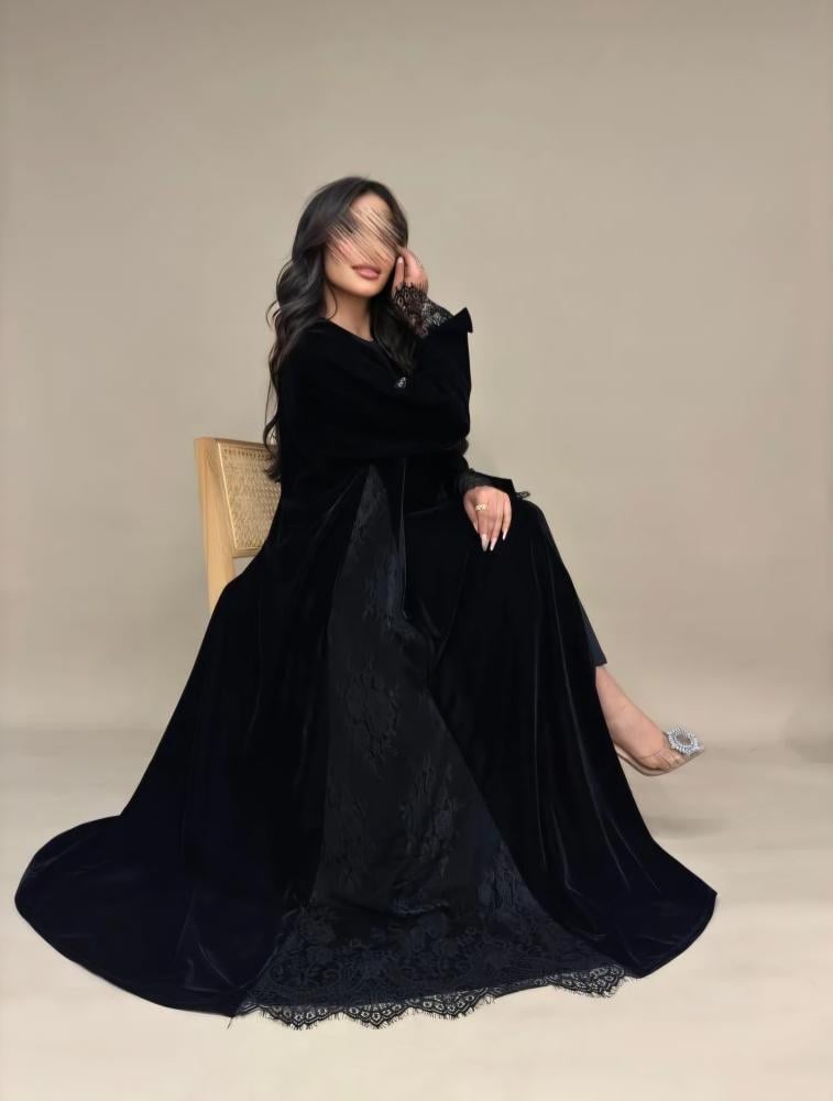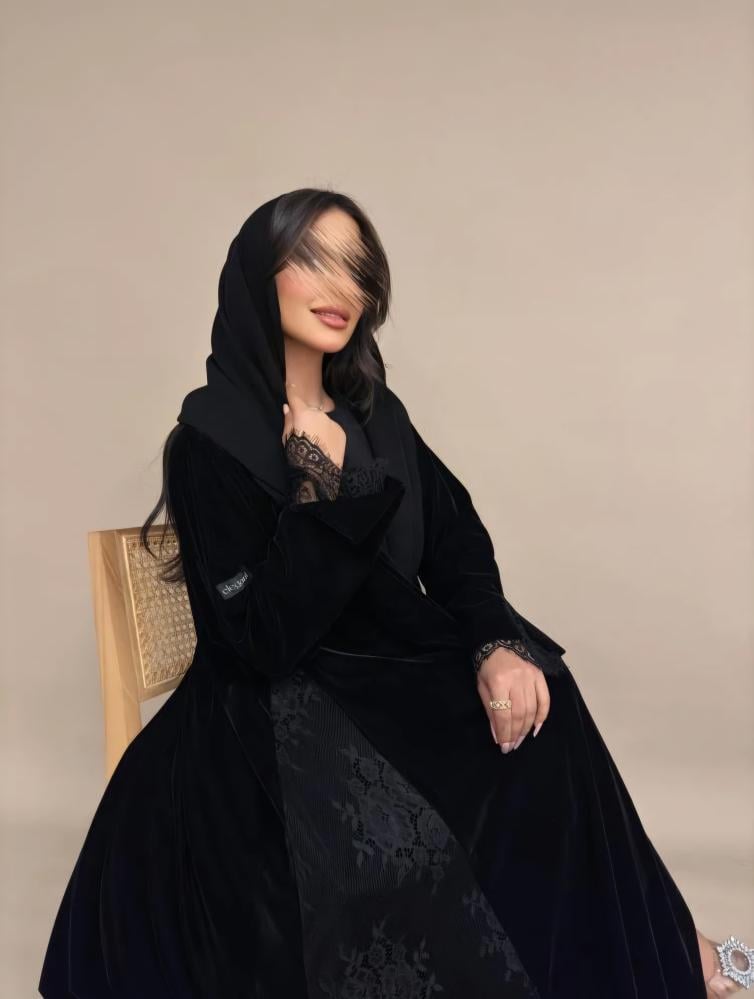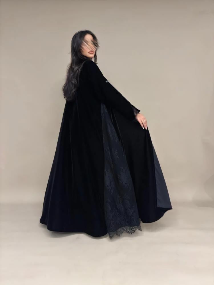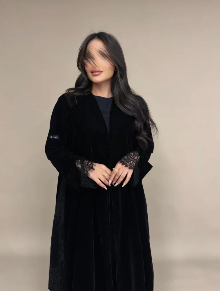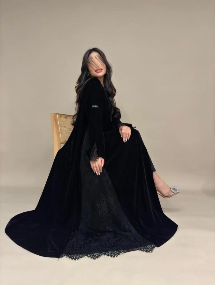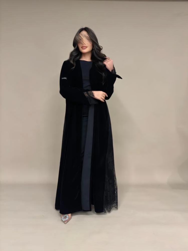 عبايه مخمل كوري + دانتيل فرنسي.