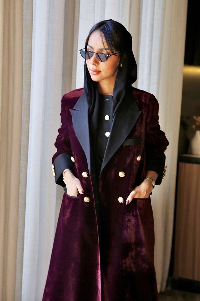 أنيقة بقصة عصرية بقماش المخمل الفاخر مع خياطة داخلية وجيوب امامية و فتحة من الخلف و كتافات اسفنج وازره باللون الذهبي