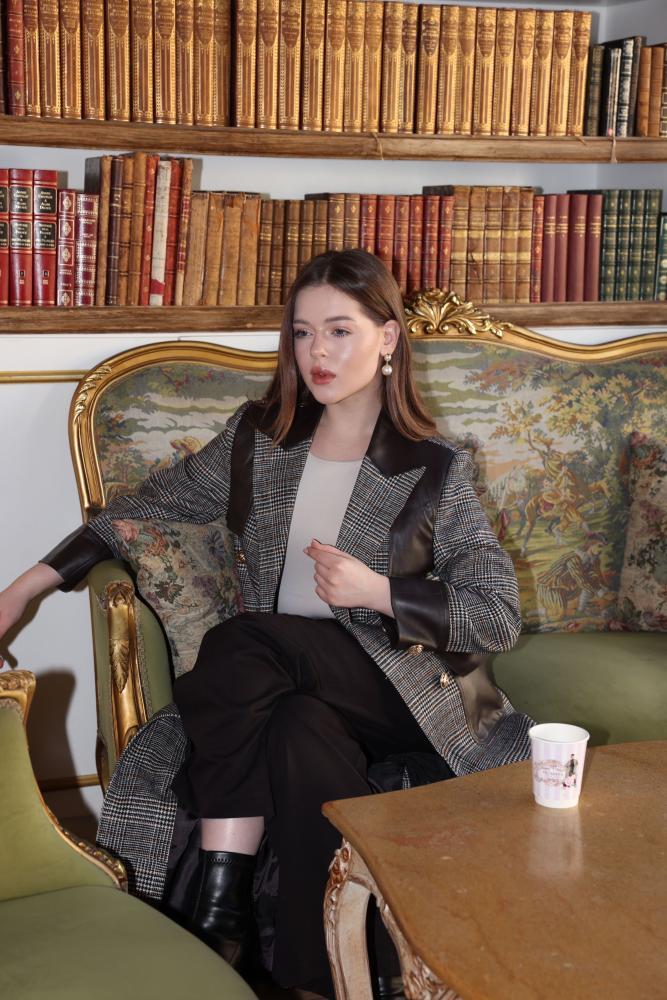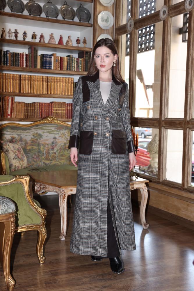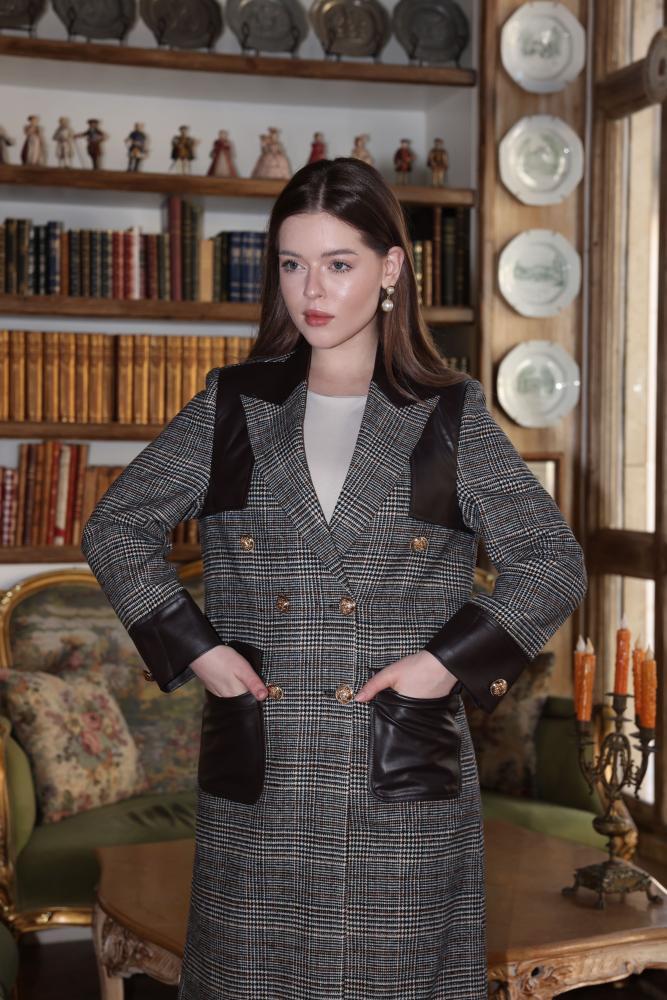 عباية بليزر كاروهات وجلد باللون البني الغامق