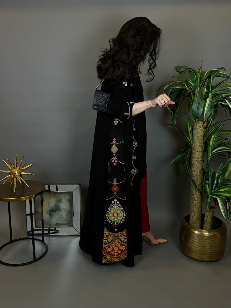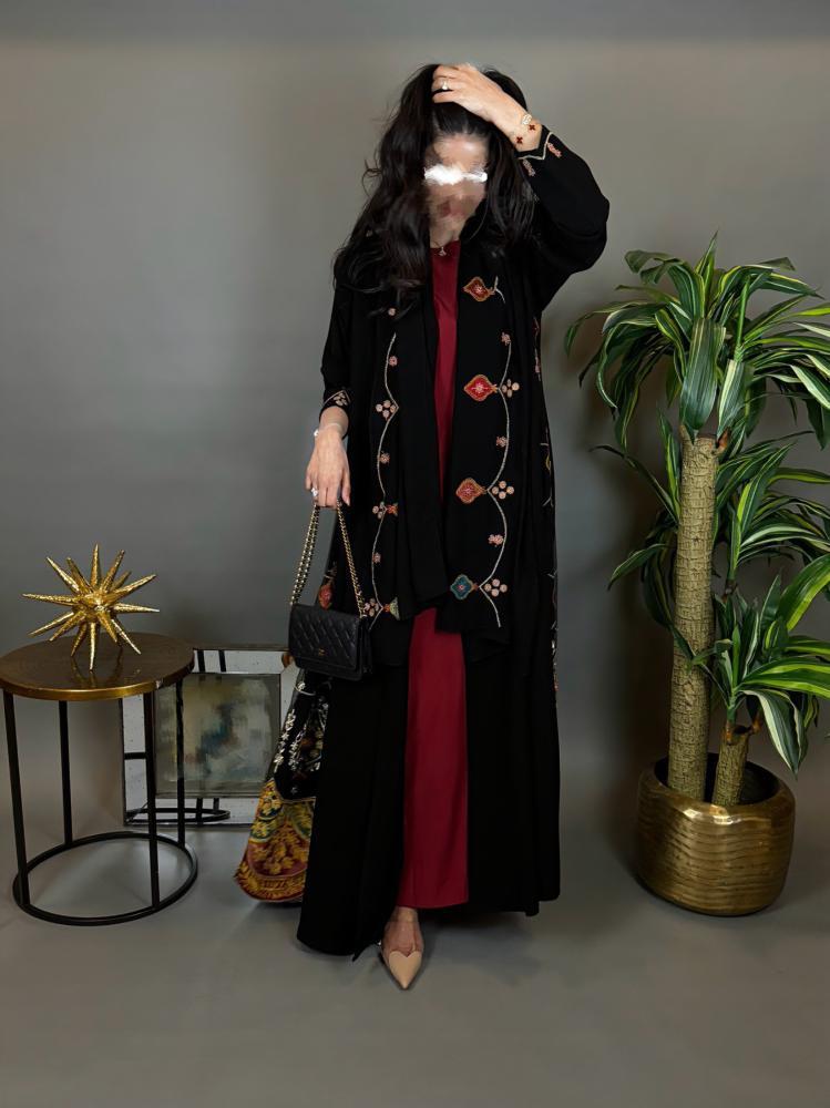 قصه كلوش -قماش كريب مع تدخيله تطريز ملون -طرحة قماش اندونوسي مطرزة.