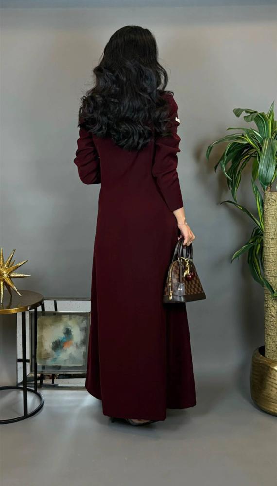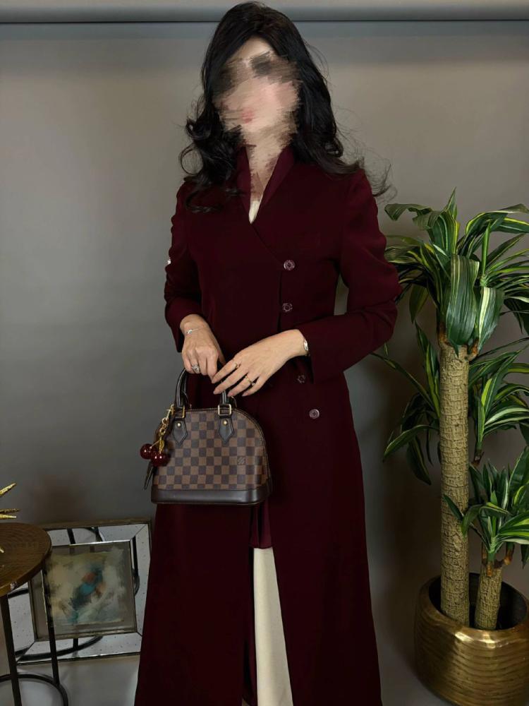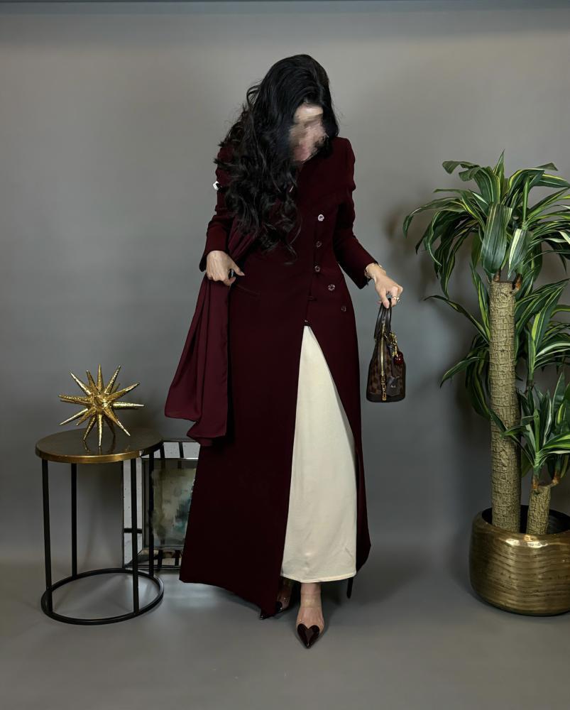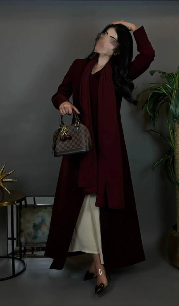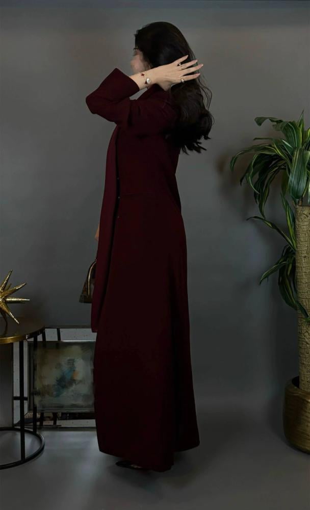 القصه بليزر -قماش كريب - اللون خمري -طرحة قماش اندونوسي ب نفس اللون .