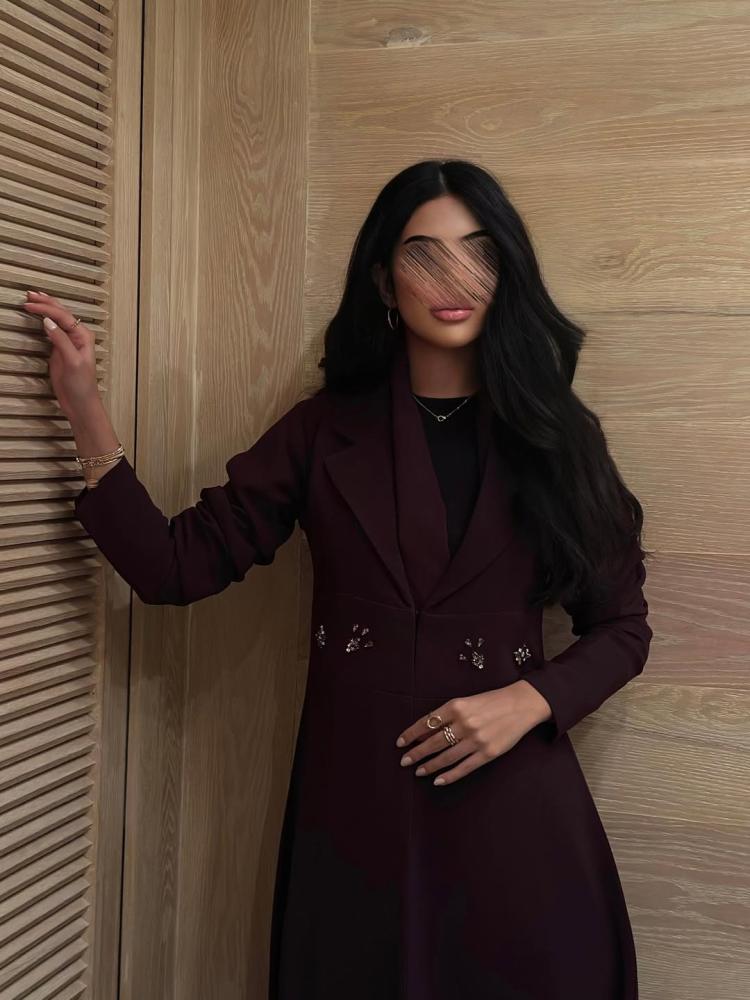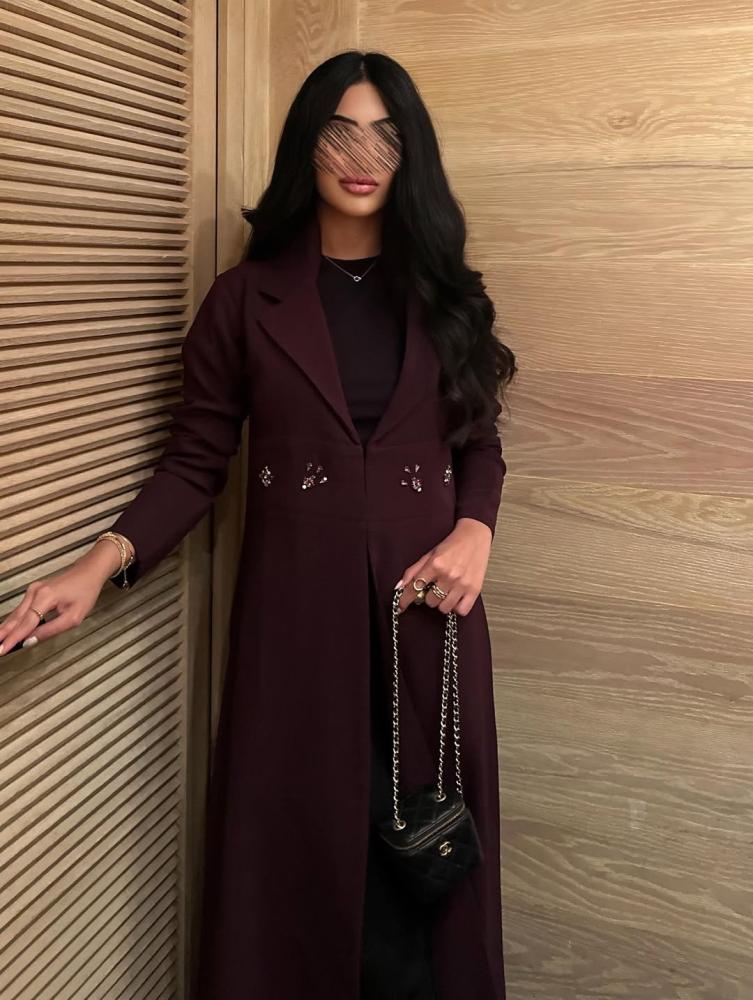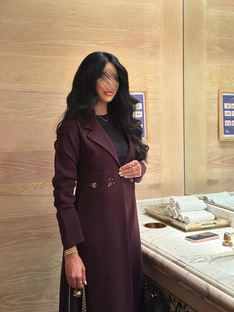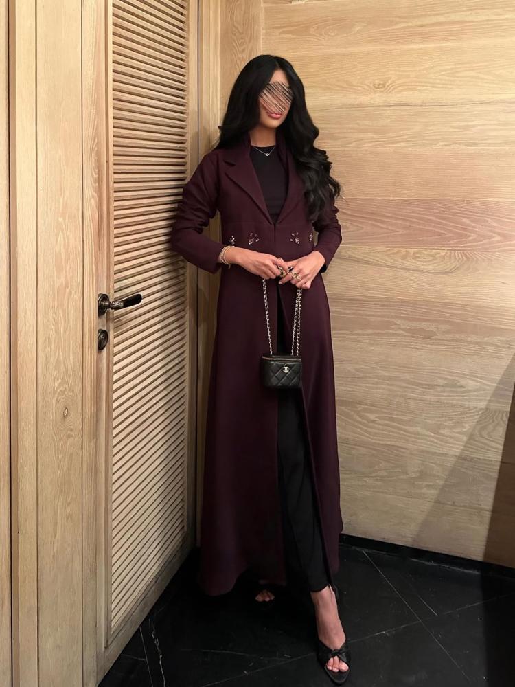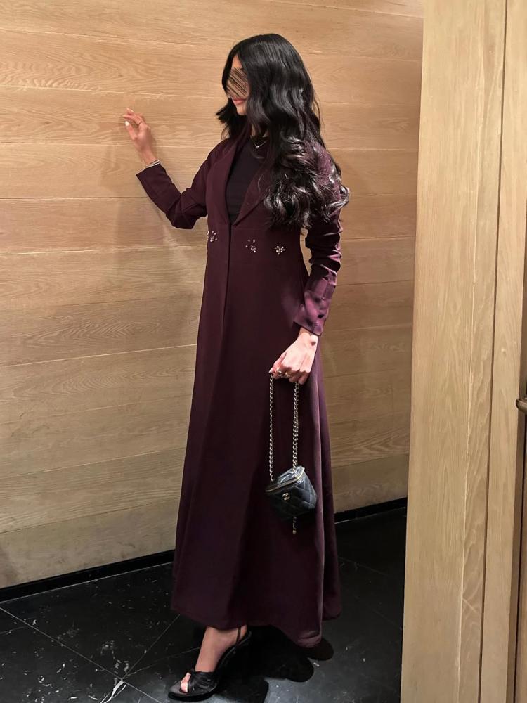 عباية مخمل واقف اسود فاحم مع دانتيل